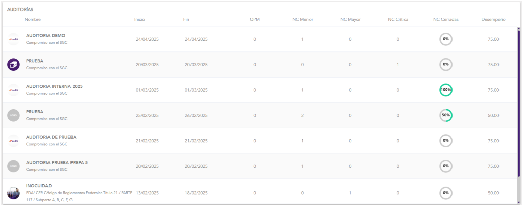 Estadísticas de Auditorías