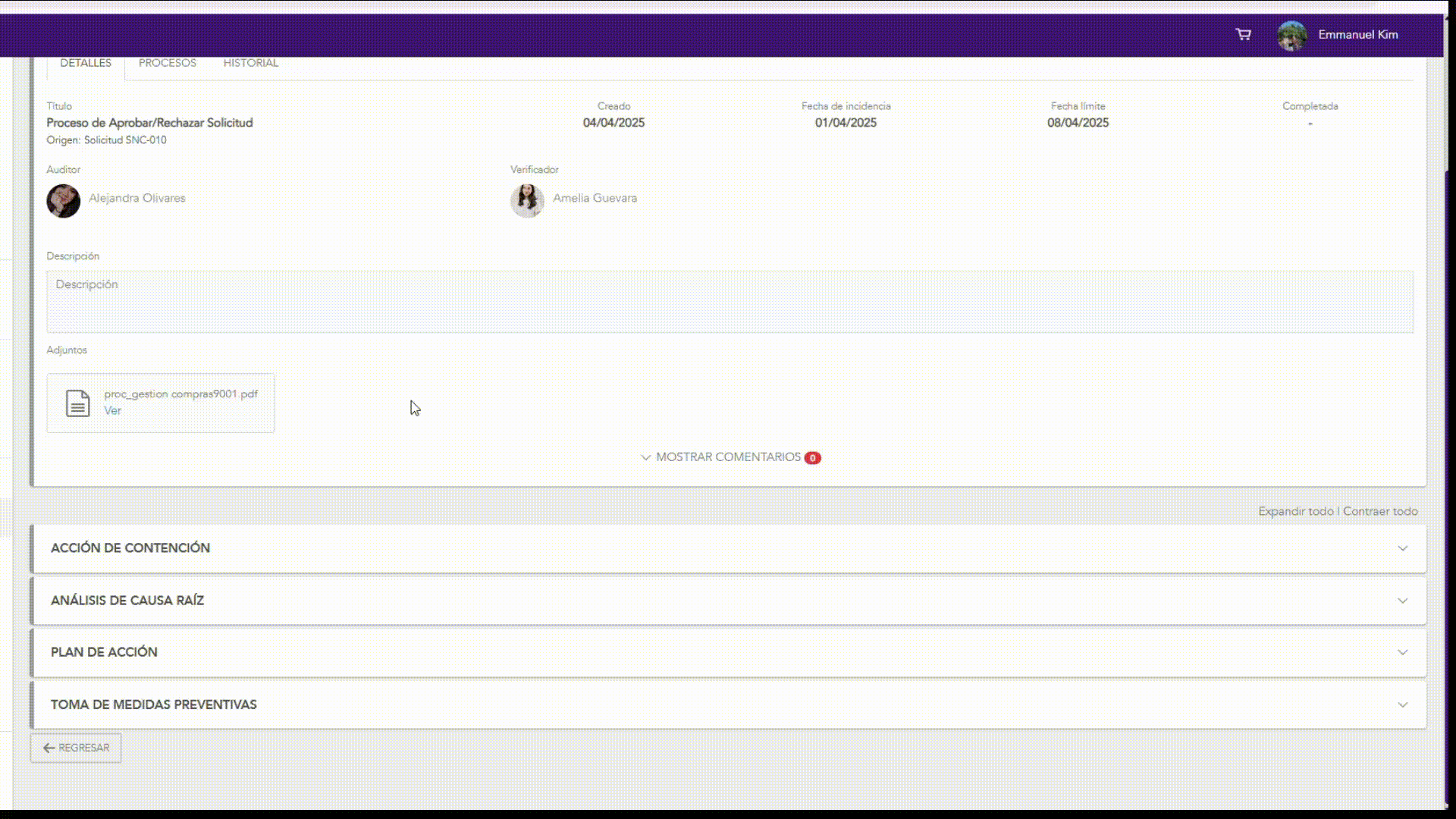 - Primero, asegúrate de que seas la persona encargada de atender la queja o no conformidad.