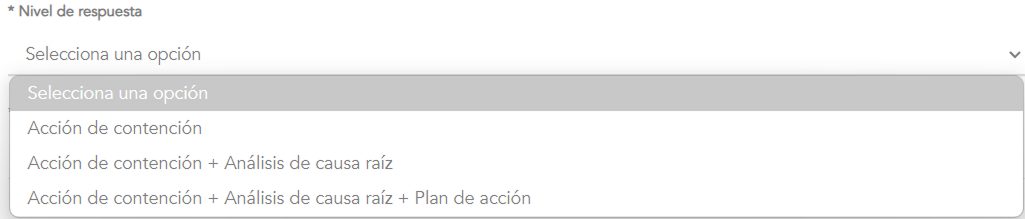- Elige el nivel de respuesta que mejor se ajuste al tipo de incidencia. Los niveles de respuesta disponibles pueden ser: