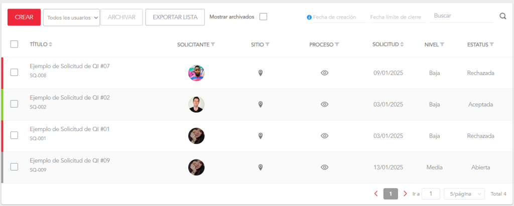 - Mostrar archivados: Activa esta opción para ver las solicitudes que ya fueron archivadas.