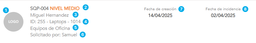 - Fecha de incidencia: 8 Fecha en que se detectó la incidencia.
